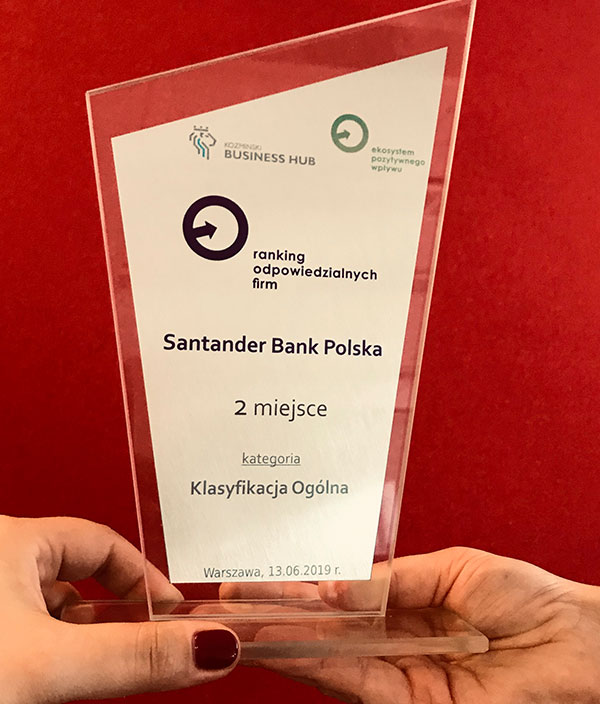 • 14/06/2019 Santander Bank Polska nagrodzony w Rankingu Odpowiedzialnych Firm