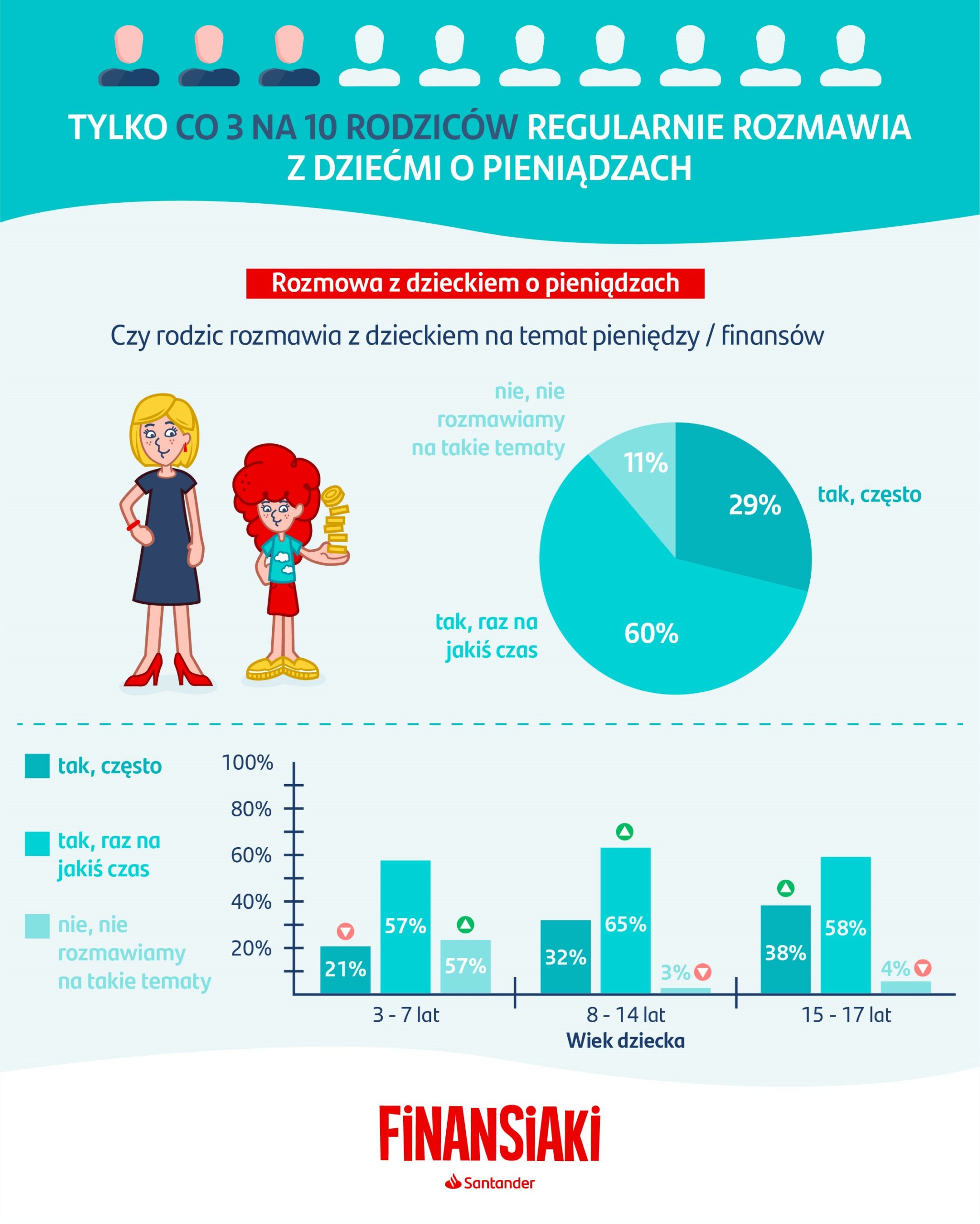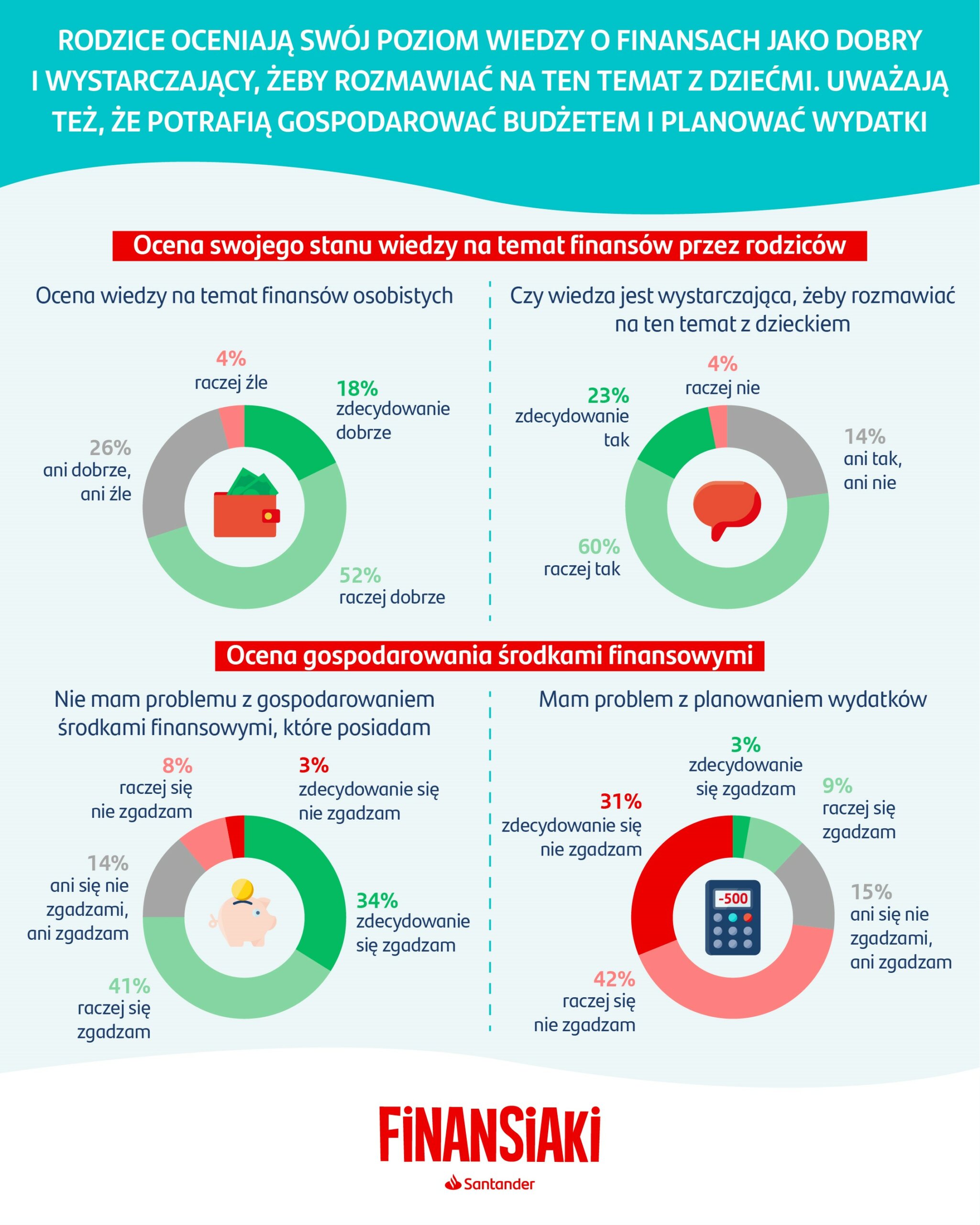 Poles believe they have quite good knowledge of personal finance. Despite this, only one third of us share such knowledge with our children on a regular basis, according to the latest survey commissioned by the Finansiaki educational programme carried out by Santander Bank Polska. More than half of the surveyed parents are of the opinion that their children can manage money well.